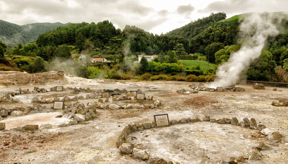 Full-day Furnas tour including Cozido das Furnas lunch and visits to Ribeira dos Caldeirões Natural Park and Salto do Cavalo viewpoint.
